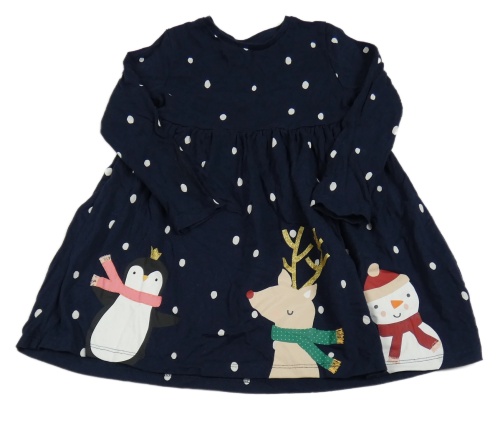 Tmavomodré bodkovaná é bavlnené šaty so sobom a tučňákem F&F
