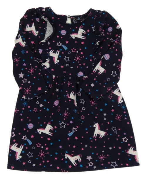 Tmavomodré šaty s hviezdami a jednorožcami Nutmeg