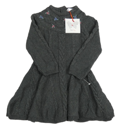 Nové - tmavosivé svetrové šaty s výšivkami květů Nula Bug
