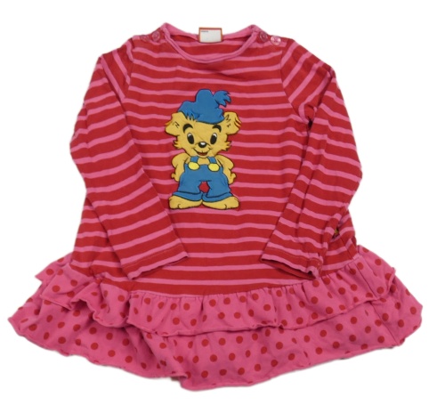 Červeno-ružové pruhované bavlnené šaty s medvedíkom
