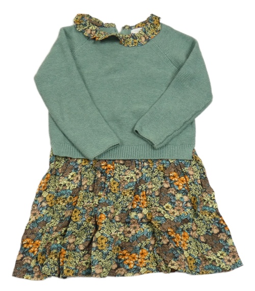 Olivovo-čierne melírované kvetované svetrovo/lehké šaty s volánikom Next