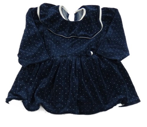 Tmavomodrá zamatová bodkovaná á šatová tunika s volánikom