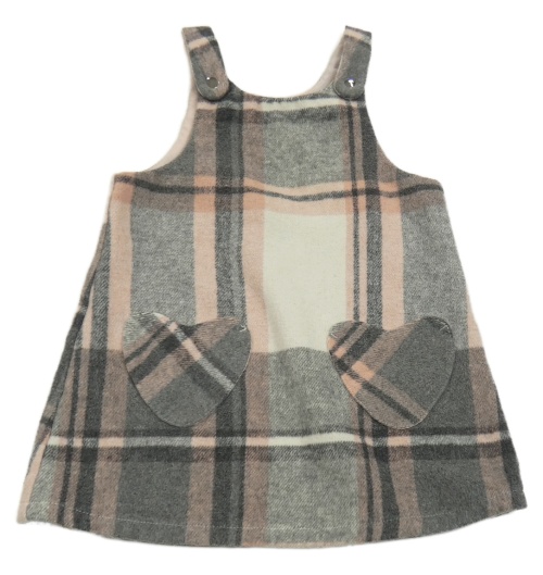 Sivo-starorůžovo-smotanové kockované vlnené šaty Matalan