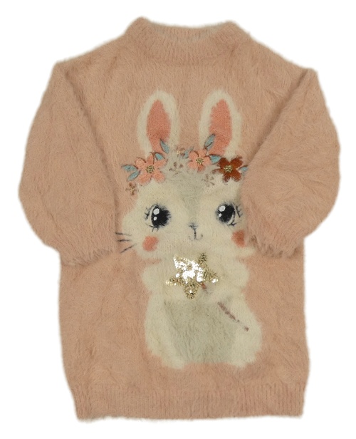 Svetloružové pleteno/chlupaté šaty so zajícem C&A