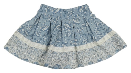 Svetlomodrá kvetovaná kolová sukňa s čipkou