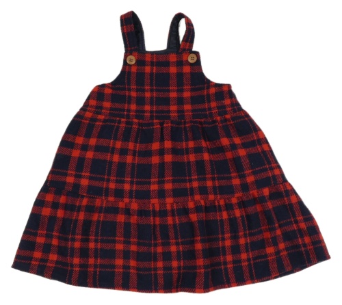 Tmavomodro-červené kockované vlnené na traké šaty Tu
