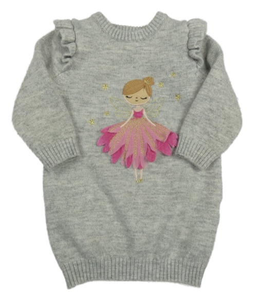 Sivá melírovaná svetrová šatová tunika s vílou a volánikmi PRIMARK