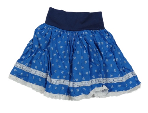 Modro-tmavomodrá plátenná sukňa s kvietkami a čipkou a madeirou