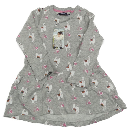 Nové - Sivé melírované teplákové šaty s lamami a srdiečkami Pocopiano