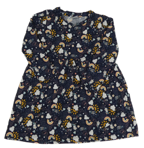 Tmavomodré šaty s jednorožcami a duhami a obláčikmi a motýlikmi Kiki&Koko