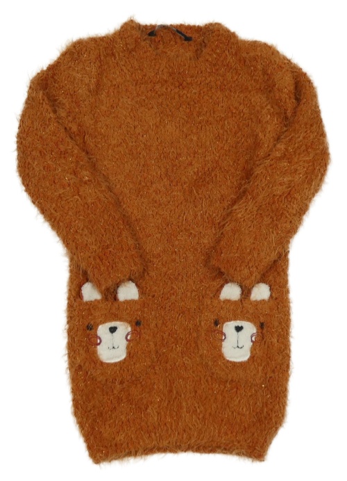 Hnedé trblietavé chlpaté svetrové šaty s vreckami s medveďmi George