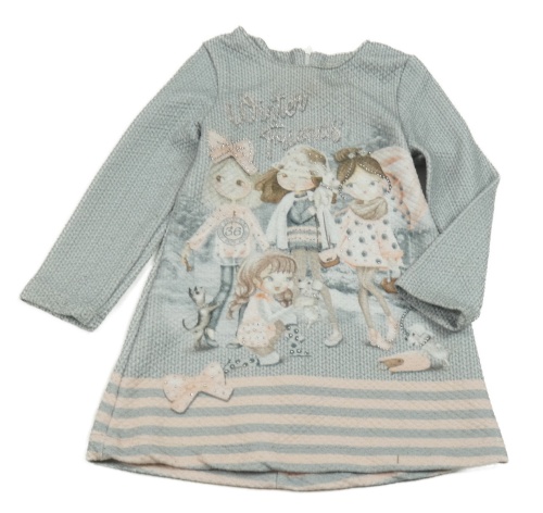 Sivé vzorované úpletové šaty s dievčatkom