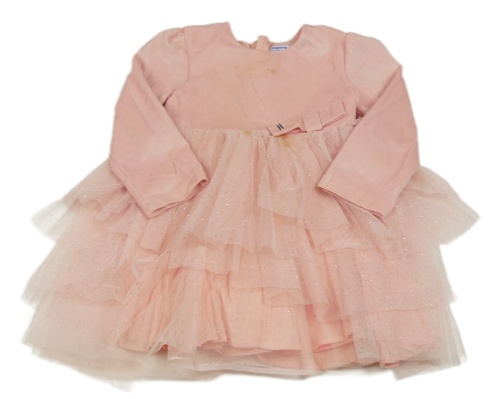 Svetloružové plyšovo/tylové šaty s mašlou Mayoral