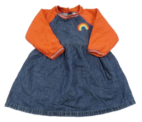 Tmavomodro-červené rifľové šaty s teplákovými rukávy s dúhou Next