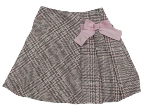Ružovo-sivá kockovaná trblietavá vlnená sukňa s mašlou Matalan