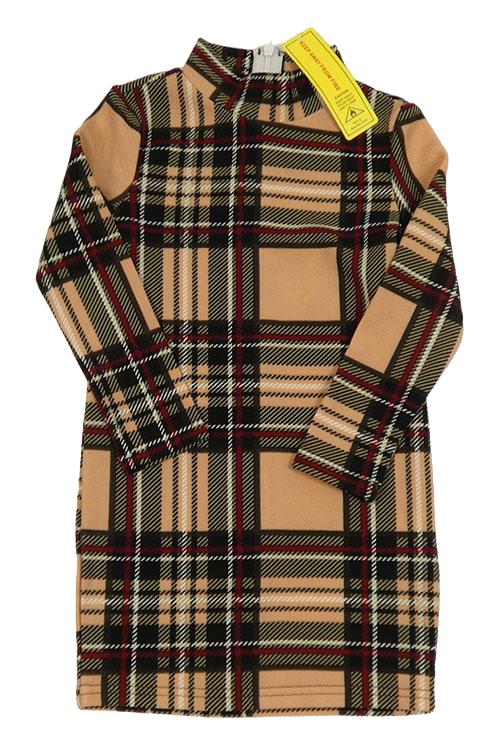Nové - Meruňkovo-čierno-béžové kockované šaty so stojačikom Shein