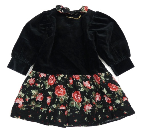 Čierne sametovo/manšestrovo-plátenné šaty s růžemi a retiazkou a golierikom