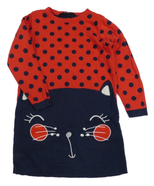 Červeno-tmavomodré bodkovaná é pletené šaty s mačkou George