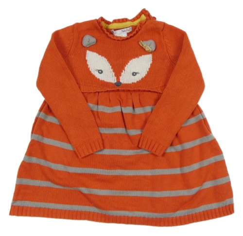 Tmavooranžovo-sivé pruhované pletené šaty s líškou Nula Bug