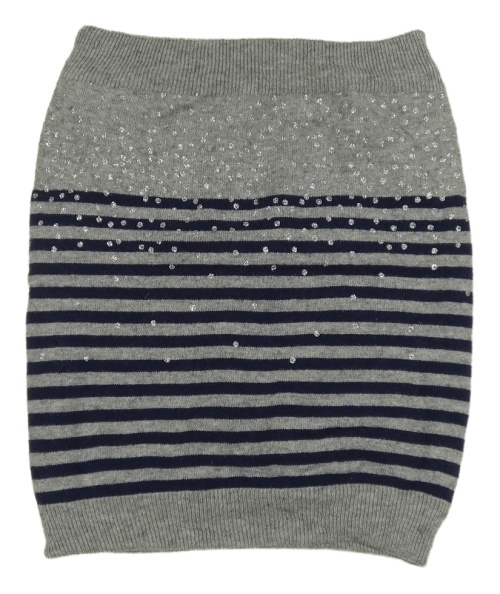 Sivo-tmavomodrá pletená pruhovaná zateplená trblietavá sukňa