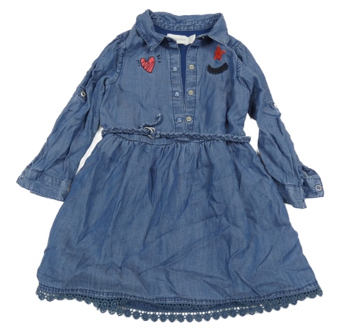 Modré košilové šaty riflového vzhledu s výšivkami a opaskom Orchestra