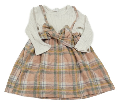 Starorůžovo-tmavošedo-okrovo-biele kockované rebrované teplákové šaty s mašlou