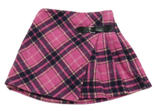 Tmavorůžovo-červeno-biela kockovaná vlnená sukňa Dunnes