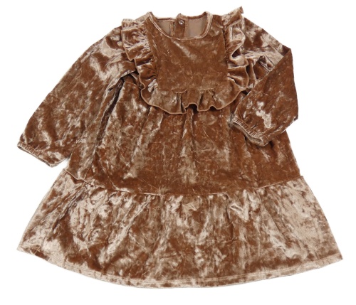 Staroružové zamatové lesklé šaty s volánikmi Nutmeg