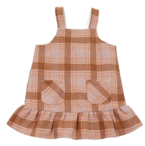 Ružovo-hrdzavé kockované vlnené šaty s vreckami
