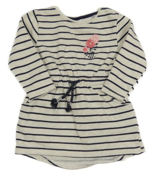 Sivo-tmavomodré pruhované teplákové šaty s květem Topolino