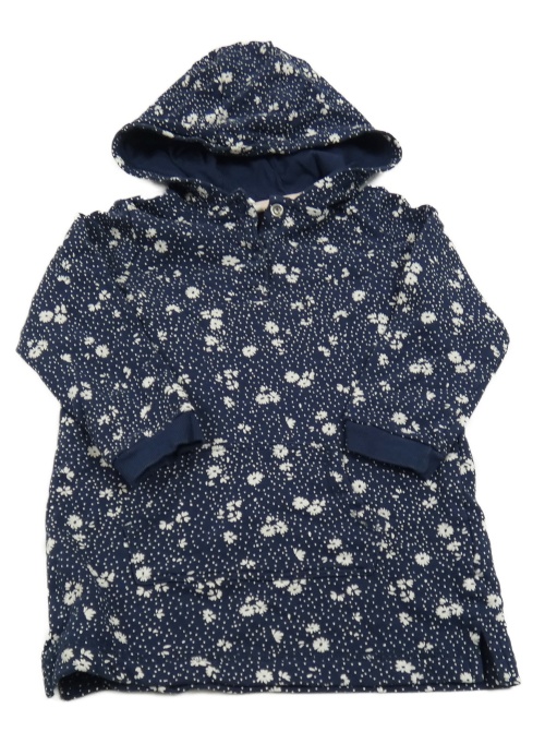 Tmavomodrá bodkovaná á tepláková šatová tunika s kvetinami a kapucňou H&M