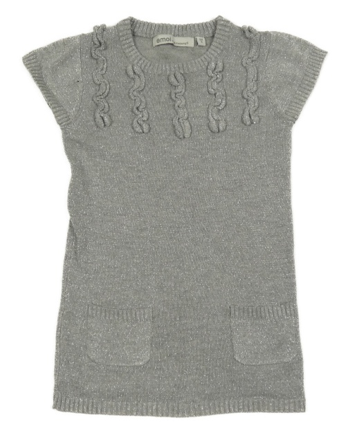 Sivé trblietavé svetrové šaty s volánikmi