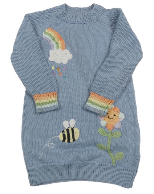 Svetlomodré pletené šaty s dúhou a včelou Next