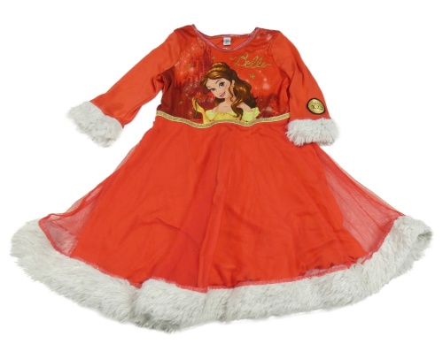 Červené tylové šaty s chlupatým lemem a Bellou Disney