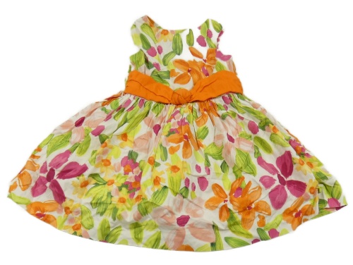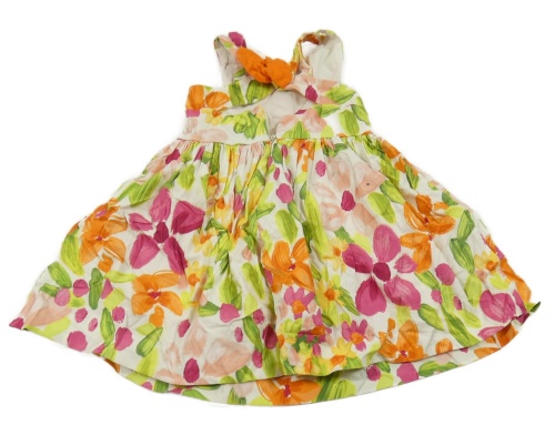 Smetanovo-zeleno-oranžové kvetované plátenné šaty Mayoral