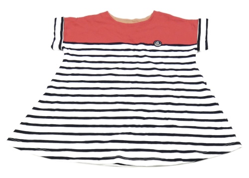 Ružovo-bielo-tmavomodré teplákové pruhované šaty
