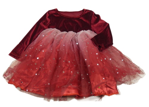 Rubínové zamatové šaty s tylovou sukní