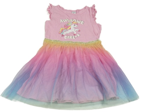 Ružové šaty s jednorožcom a barevnou tylovou sukní Dopodopo
