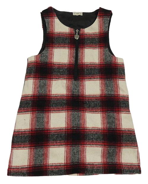 Béžovo-čierno-červené kockované vlnené šaty F&F