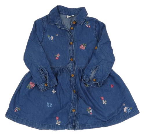 Modré ľahké rifľové prepínaci šaty s výšivkami květů F&F
