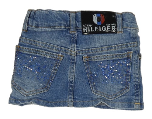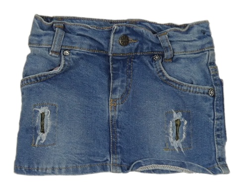 Modrá rifľová sukňa s kamienkami a vyšúchaním