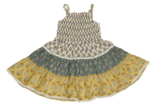 Smetnaovo-sivo-okrové plátenné žabičkové šaty so vzorom Matalan