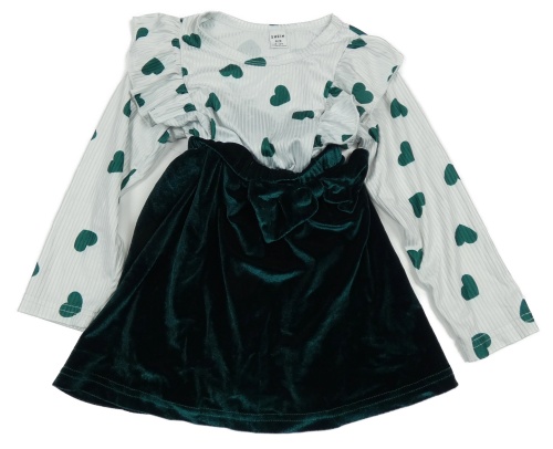 Bielo-zelené šaty so srdiečkami a sametovou sukní Shein