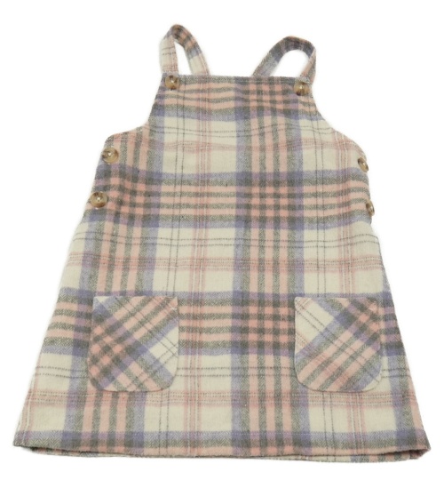 Smetanovo-lila-ružové kockované na traké vlnené šaty Primark