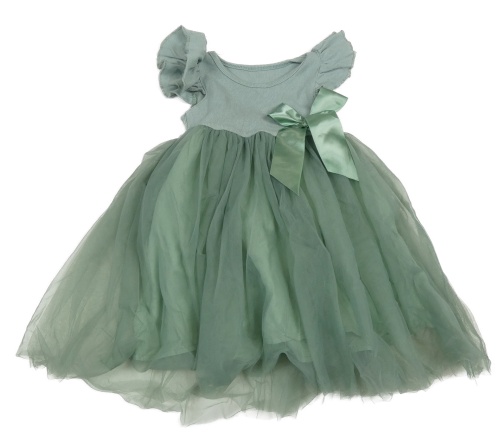 Svetlozelené rebrované šaty s tylovou sukní a mašlou