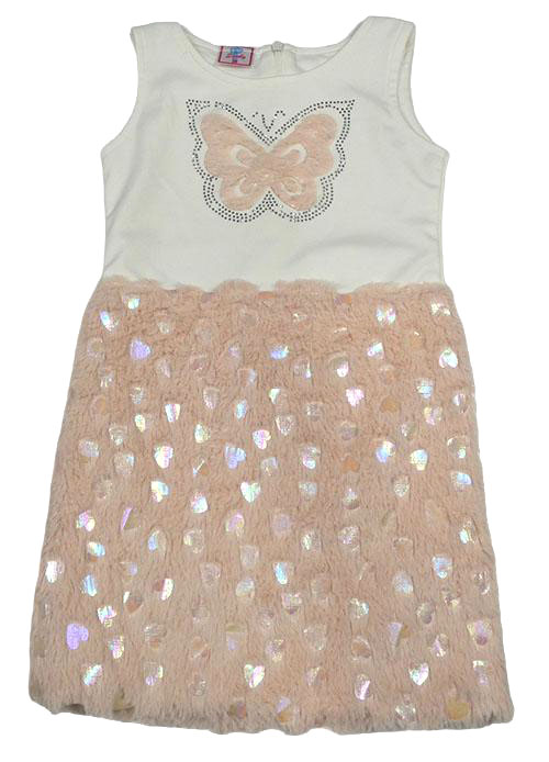 Bielo-ružové šaty s motýlom s kamienky a chlupatou sukní so srdiečkami