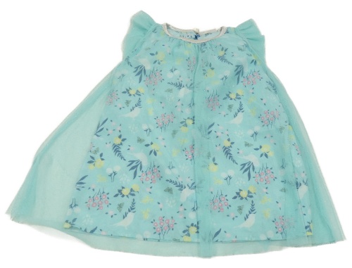 Belasé trblietavé tylové šaty s vtáčky a motýlikmi a kvietkami a volánikmi INFINITY KIDS