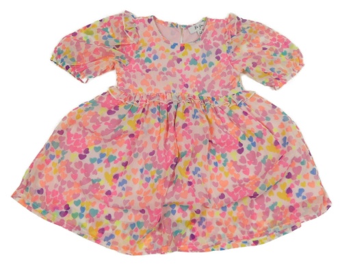 Svetloružová -farebné šifónové šaty so srdiečkami a volánikmi