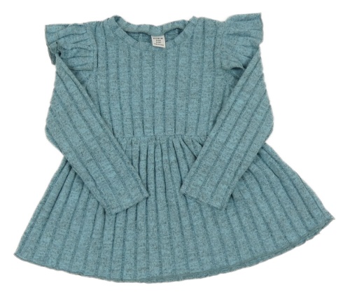 Světlemodro-sivá melírovaná rebrovaná šatová úpletová tunika s volánikmi SHEIN