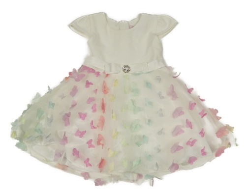 Biele šaty s opaskom a tylovou sukní s farebnymi motýlikmi